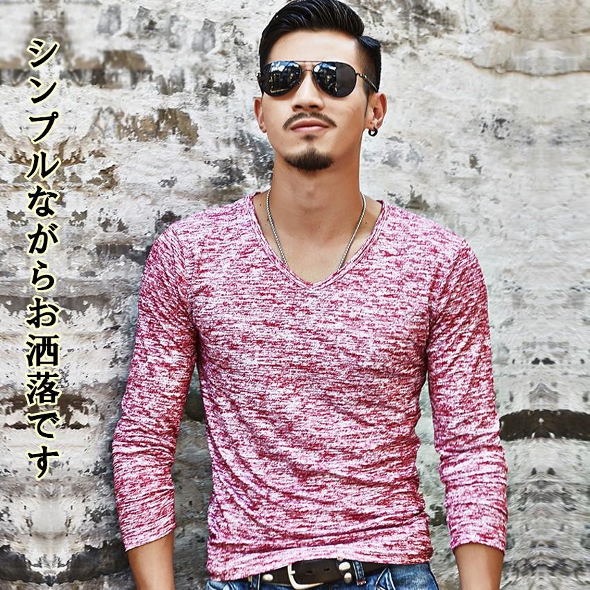 楽天市場 メール便可 カットソー Tシャツ メンズtシャツ トップス長袖 杢 無地 Vネック 長袖tシャツ メンズおしゃれ着こなし ロングt Vネック ロンt カットソー メンズ クレッセント